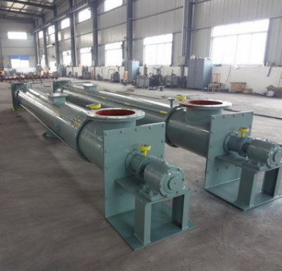 螺旋输送机采用管式,壳体采用无缝钢管制作,螺旋管轴采用整轴设计,在机体内不设置悬挂轴承,端部设外置轴承,并设充气室,防止壳体内的粉尘进入轴承,头尾两端壳体轴封采用专用的氮气密封装置防止粉尘外泄,螺旋输送机设计时按整体防爆考虑,机壳上设置氮气充气口,在物料输送过程中及停机时,可充入氮气,防止煤粉自燃产生爆炸危险;尾部设有德国施奈德防爆转速仪。